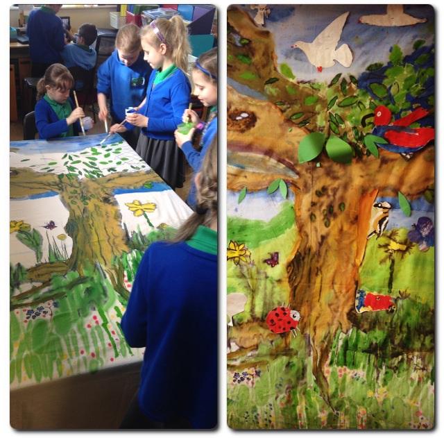 Year 3 and 4 creating a back drop for their role play area.